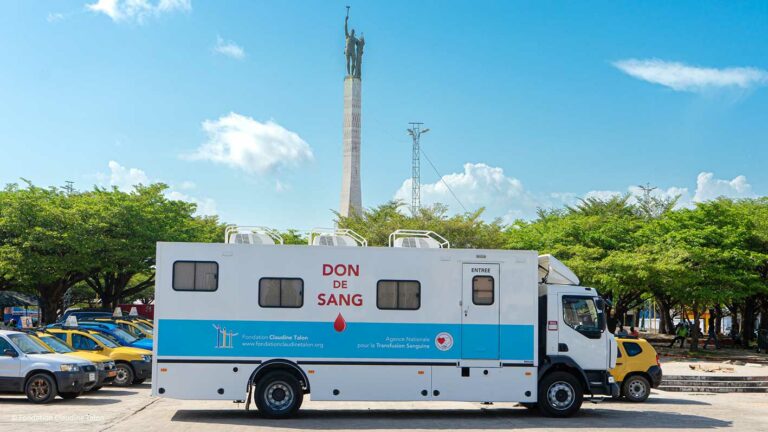 Pour contribuer à la réduction de ces décès évitables, la Fondation Claudine Talon a acquis et a mis en service en 2022 un camion dédié à la collecte de sang afin d’appuyer les activités de l’Agence Nationale pour la Transfusion Sanguine. Le camion est équipé pour accueillir et prélever simultanément le sang de 4 donneurs.